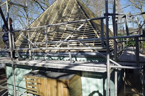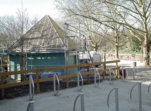 Non content de la balourdise de ces inutiles PAV, Paris Est Marne & Bois récidive en perpétuant cette néfaste tendance à dilapider l'argent des contribuables, comme on le voit aujourd'hui avec le remplacement de la toiture de cette baraque qui était quasi neuve... Pourquoi ne pas l'avoir prévue initialement en tuiles?